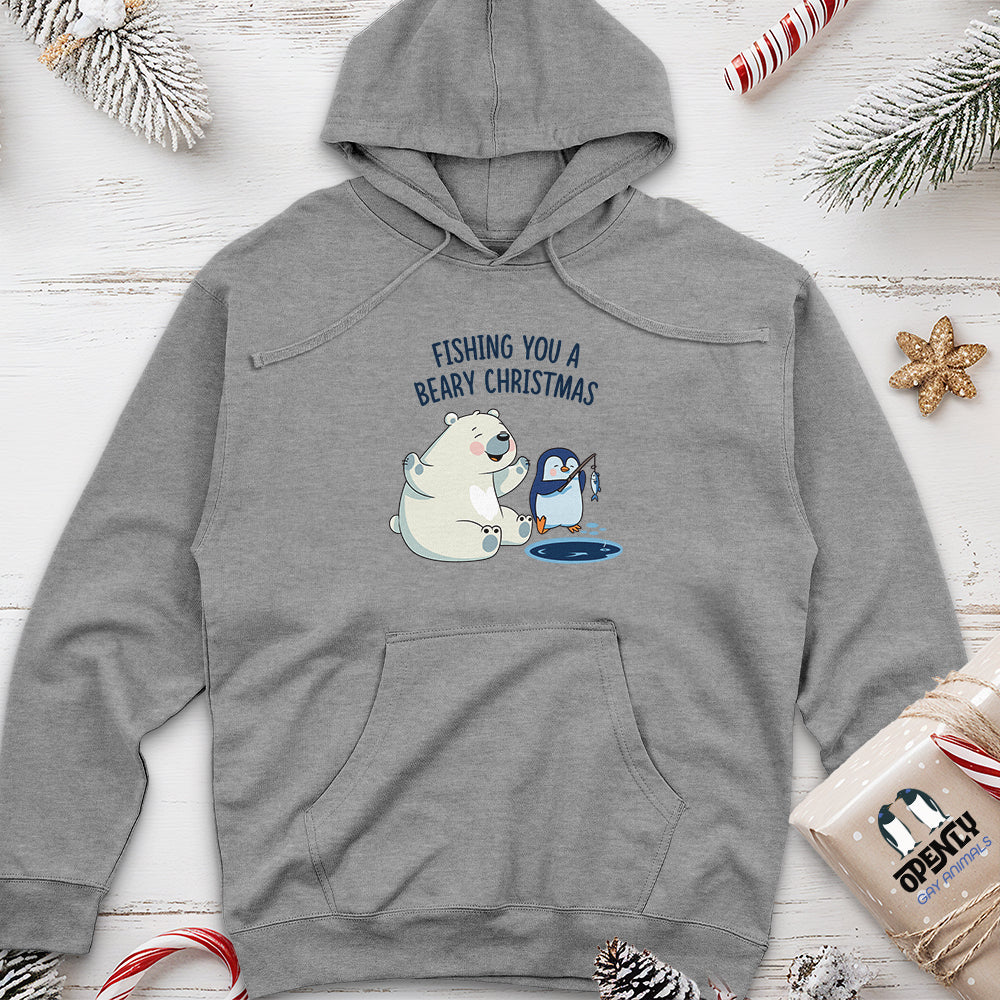 Fishing You a Beary Christmas Unisex Midweight Hoodie